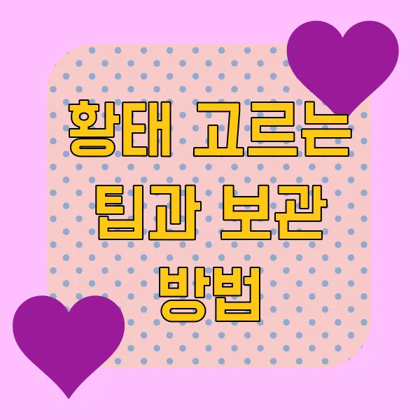 자, 이렇게 황태를 활용한 다양한 요리법을 알아봤는데요, 어떠셨나요? 황태의 변신은 무죄! 정말 다양한 요리로 만들어 먹을 수 있죠? 이제 황태 요리의 매력에 푹 빠지셨길 바라며… 저는 다음 챕터에서 황태 고르는 팁과 보관 방법에 대해 알려드릴게요! 기대해 주세요! 😉