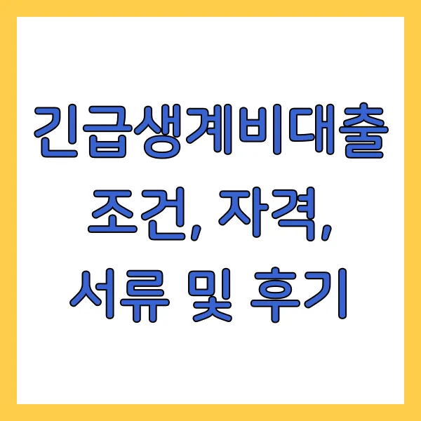 긴급생계비대출 조건, 자격, 서류 및 후기 에 대해 궁금하신가요? 갑작스러운 경제적 어려움으로 힘든 시간을 보내고 계신 분들을 위해, 2025년 최신 정보를 바탕으로 긴급생계비대출 에 대한 모든 것을 꼼꼼하게 정리해 봤습니다. 자격 조건부터 신청 절차, 필요 서류, 그리고 실제 후기까지! 이 글 하나로 긴급생계비대출 에 대한 궁금증을 말끔히 해소하실 수 있도록 도와드릴게요!