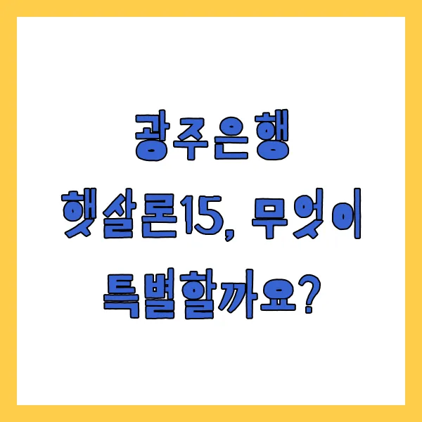광주은행 햇살론15, 무엇이 특별할까요?